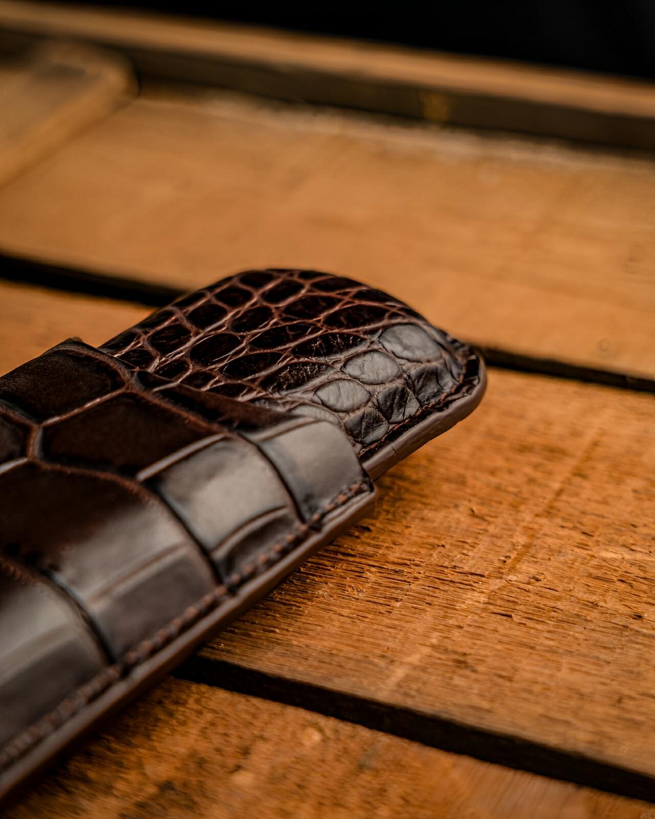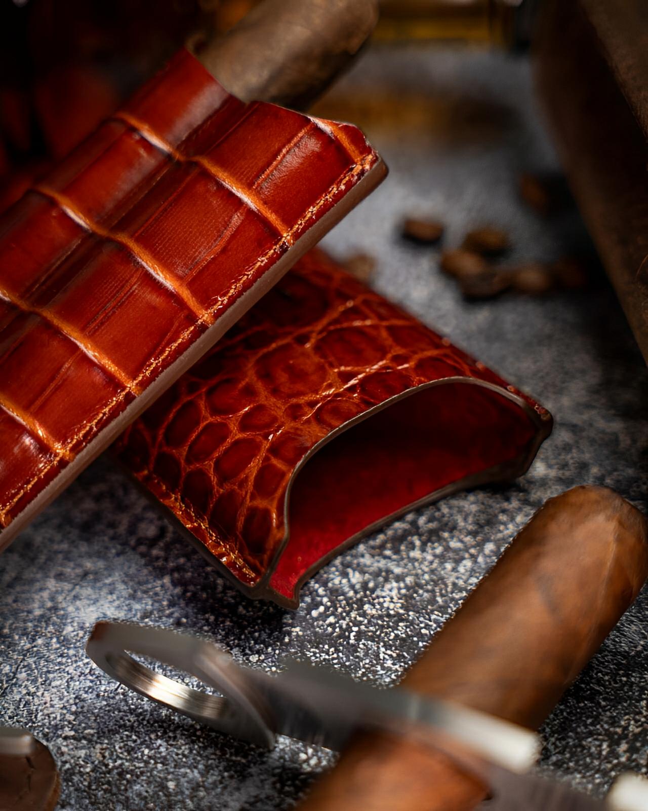 Двоен калъф за пури - Гланцово Кроко изпечена сиена